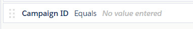 JOURNEY TIP: When adding the Campaign ID (1) as a filter in the Entry Criteria for the Salesforce Data Entry Event, paste in the campaign ID (2) from Salesforce Sales Cloud by copying it from the URL. Wait a second as the campaign will populate just below (3).