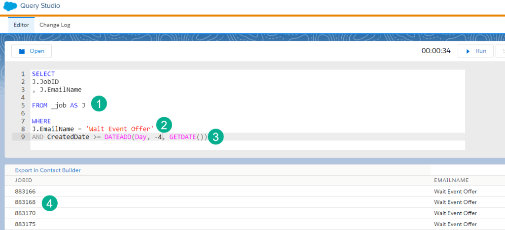 (2) We enhance in our Where clause to only pull in those jobs that were sent the name of the email andutilize the name of the email