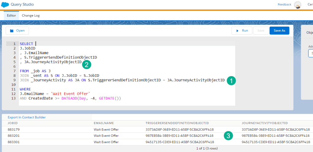 (2) We’re adding the JourneyActivityObjectID to our SELECT statement so we can output the data