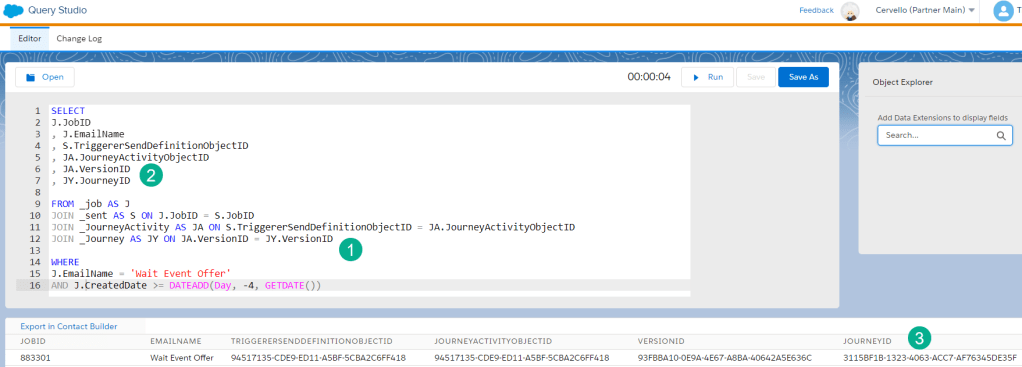 PART II: Obtain that Journey ID via Marketing Cloud Data Views – SQL