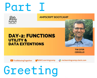 In this session the team participates in an Ampscript Bootcamp that is hosted and created by Jyothsna Bitra as part of the Phoenix Salesforce Marketer Group. The team covers Utility functions including: attributevalue and v function. And the team also does a deep dive into the various Lookup functions as well as For loops.