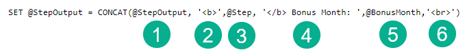 One last step you’ll need to set a variable that gets added with the Step and BonusMonth variables each loop. To do that we’ll use the CONCAT function.