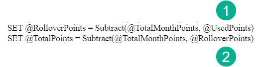 Let’s take a look at how Michelle sets her RolloverPoints and TotalPoints values in her Ampscript code: