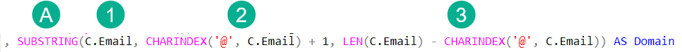 To figure out #2 we’ll need to utilize the CHARINDEX function that will give us the position in the string where the @ symbol appears.