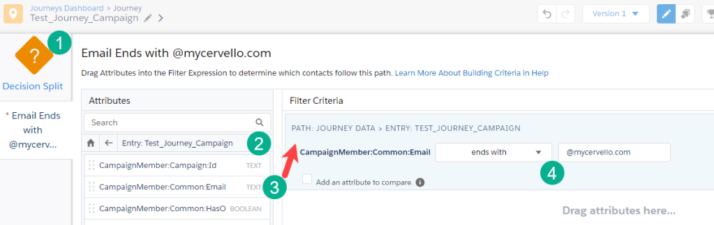 (4) CRITERIA – what are the filters that need to be present, in our case a specific campaign and the campaign member status of “Add to Journey”