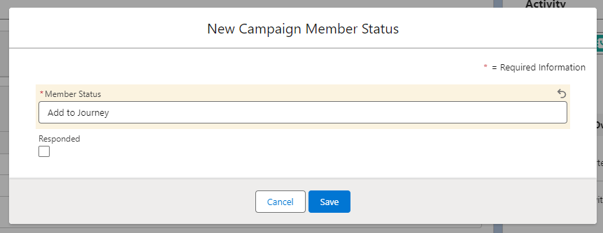 Be mindful when adding campaign members statuses as punctuation matters. For instance if you created a “Add to Journey” status but a “Add To Journey already exists you can quickly create an unmanageable list of statuses. This can be cumbersome if you are selecting a status from a drop down menu and have to scroll through dozens of statuses.