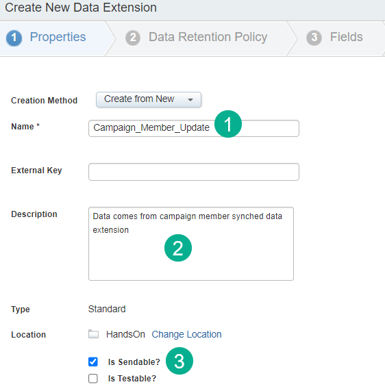 Data Extension Tip #2: Use the description to record where your data comes from and you could also indicate the query where it’s used. We learned this tip from Matt Brulet in a Data Cloud Bootcamp session so thank you Matt!
