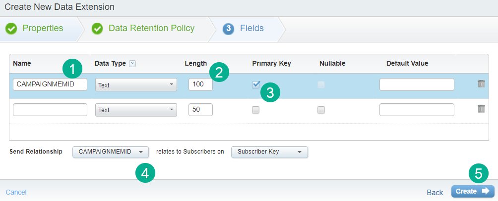Step III: Create a data extension to store the campaign members and be the entry source for the Journey