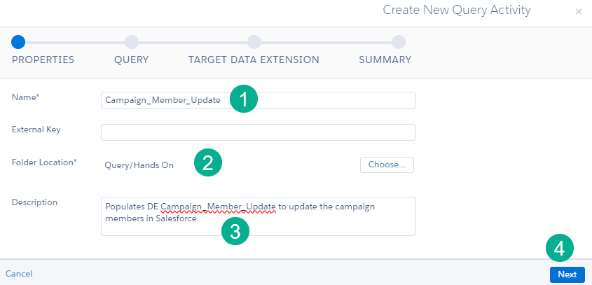 (1) The campaign we’re using is called Test_Campaign_Update and in the url we can capture the campaign id: 701Kg000000gSU6IAM which will be useful in our query in Marketing Cloud.
