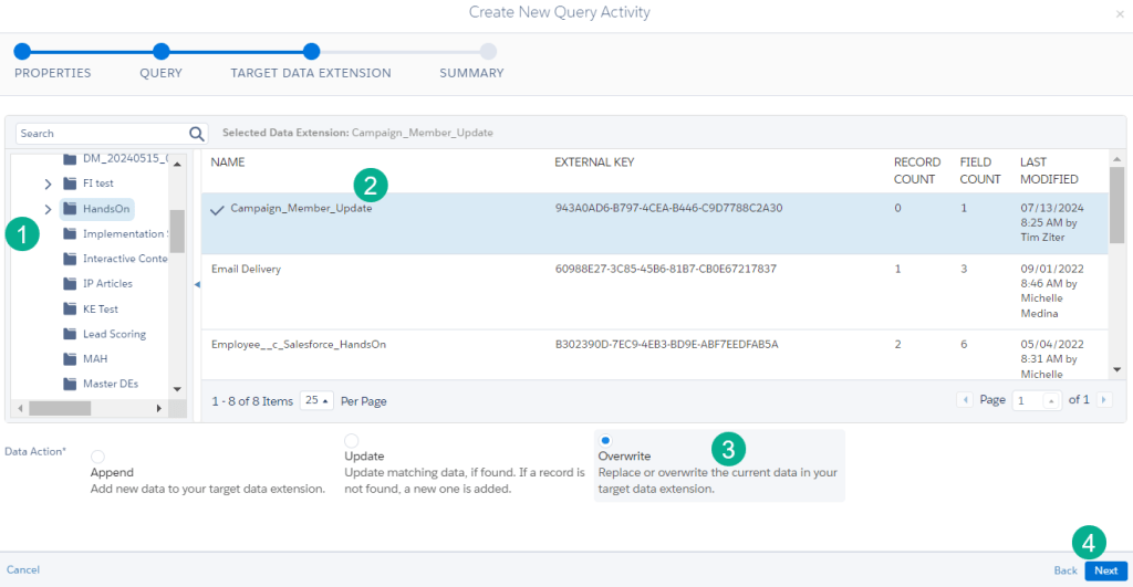 (3) Select the campaignmember_salesforce synchronized data extension. For a walkthrough on how to create synchronized data extensions click here: https://handsonsfmc.com/how-to-create-a-synchronized-data-extension-in-marketing-cloud/