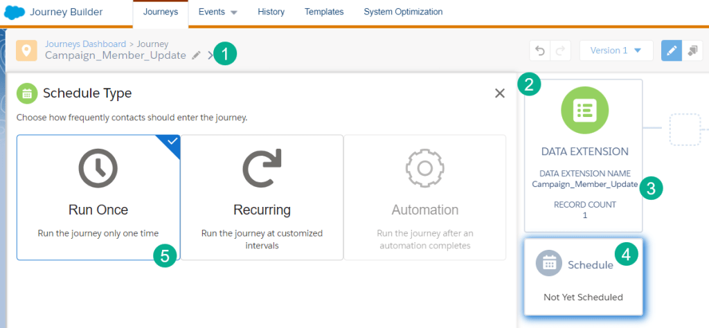 (5) Select Run Once if your data extension isn’t tied to an automation.