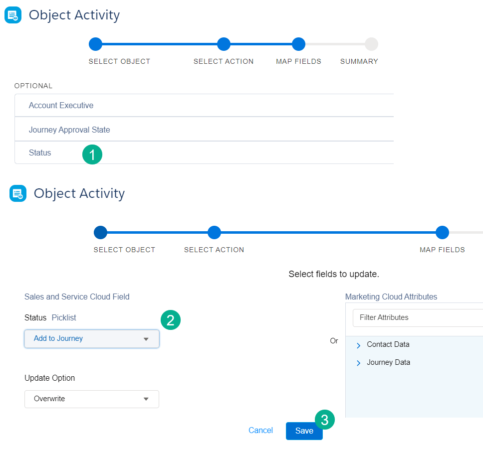 Solution: Build a Journey that’s single purpose is to update records in Sales Cloud. We’ll accomplish this build in three steps: