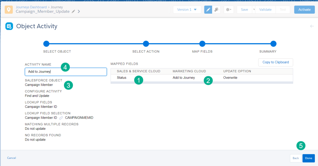 Now for the fun part sending through the campaign member record to be updated in Salesforce Sales Cloud via a Marketing Cloud Journey.