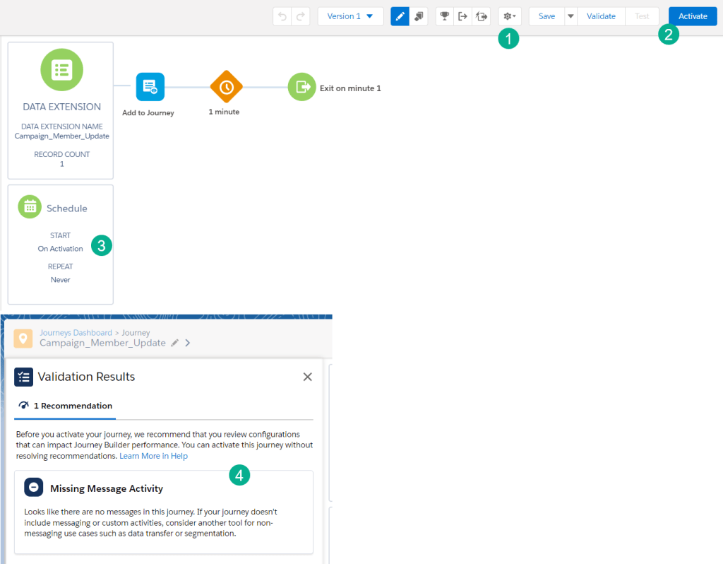 (4) It can be helpful to name the activity to the updated status so you can verify visually on the Journey canvas.