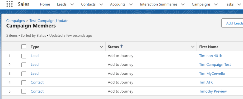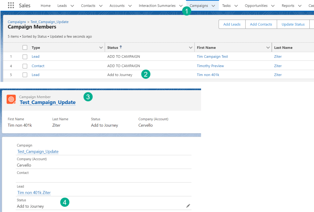 Let’s navigate back into Salesforce to see if our test campaign plan member status was updated.