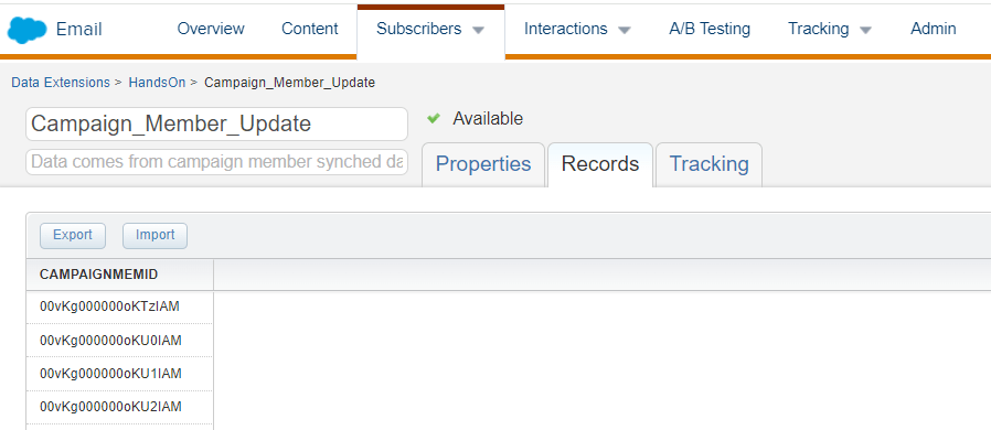All of the data we’ll use in our query comes from the campaign member synchronized data extension: