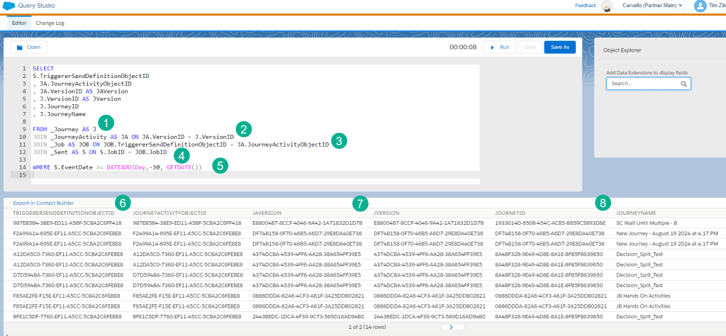(1) In our FROM statement we’ll start off with the Journey data view.