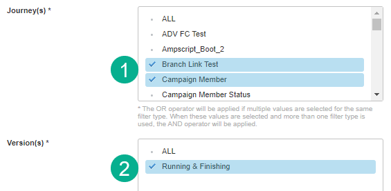 For our purpose let’s select all the Lead Nurture Journeys and All Versions for the last 30 days.