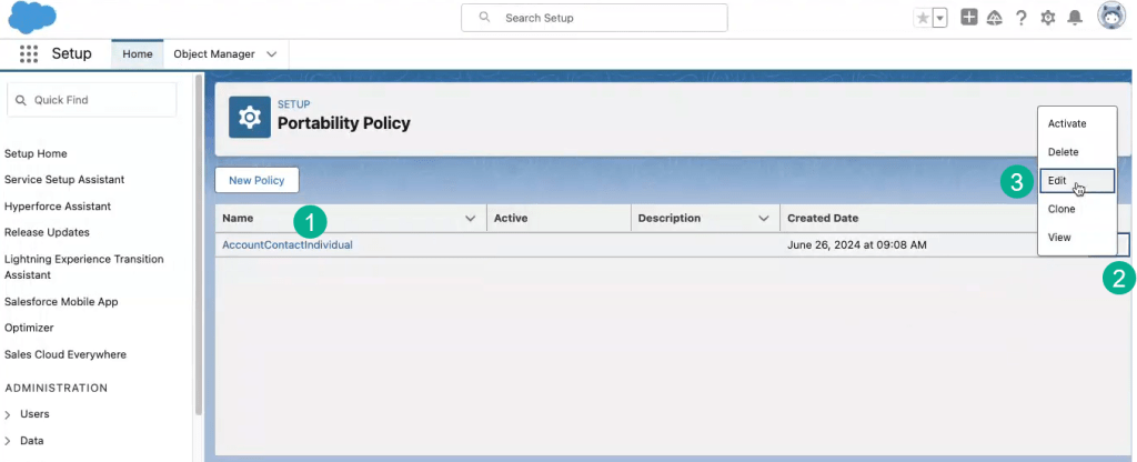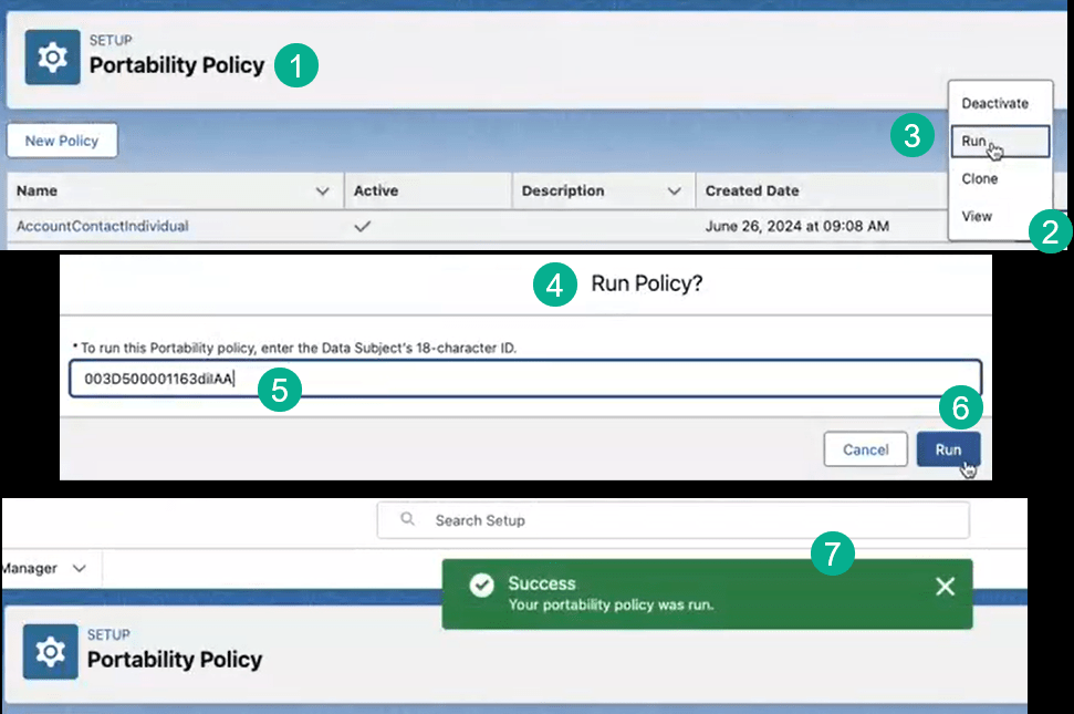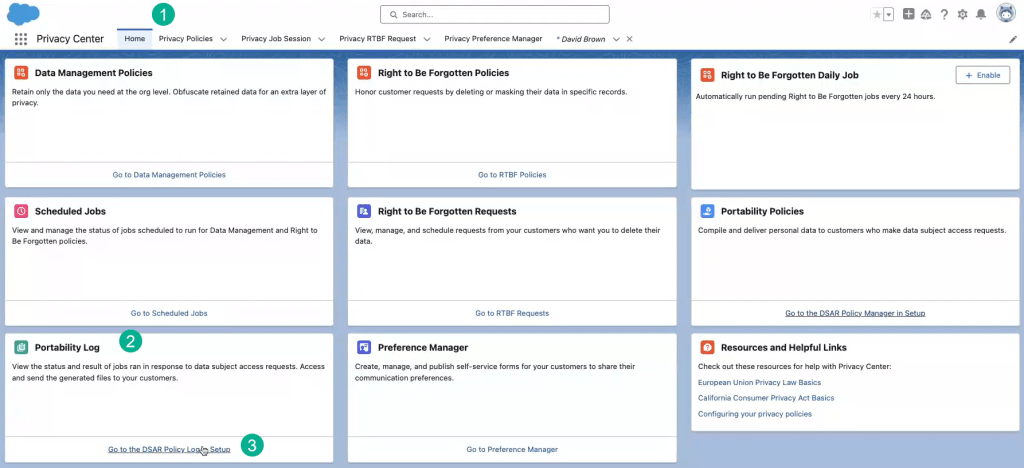 (3) Select the “Go to the DSAR Policy Manager in Setup” link under the Portability Policies tile on the home screen.