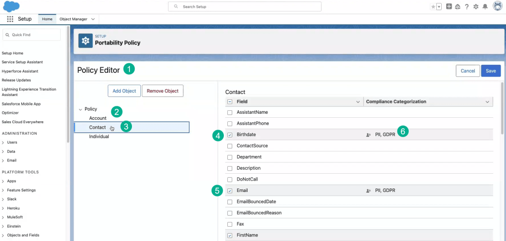 (6) If your fields are already determined for PII the Compliance Categorization will automatically select these fields.