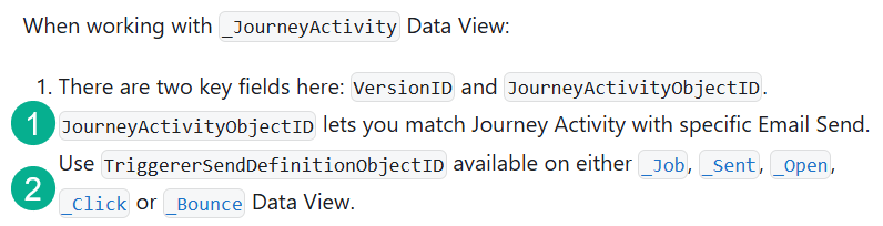 All that’s left is to match the JourneyActivity to the Journey with the VersionID field and output what you want to know about the Journey.