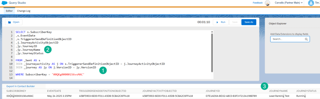 In this blog we’ll cover how you can use the amazing Marketing Cloud Data Views and Query Studio to solve a common problem: How to find the journey that sent a particular email.