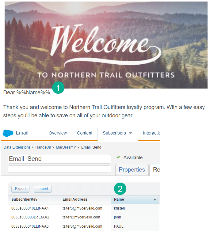 (2) The Name variable used above is being pulled from the email send data extension where it contains the first name of the subscriber/loyalty member.