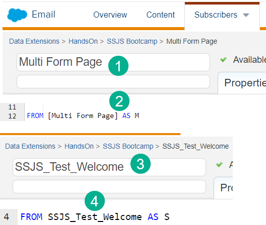 (2) Why? When calling the data extension in a query you’ll need to surround the DE name in [ ].