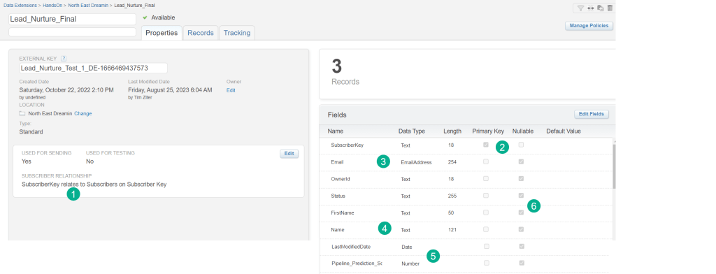 (3) There are many different data types beyond the default “Text” data type so be mindful of the best type for each field. EmailAddress for instance automatically populates at 254 length and is required type in order to be sent as the email address.