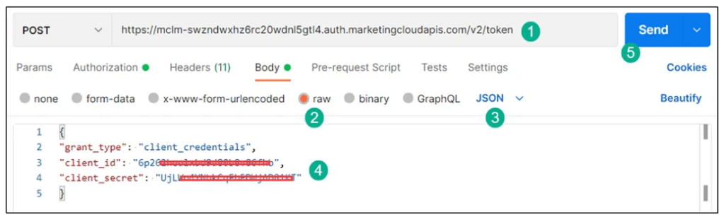 (5 – 6) Select the appropriate settings in Postman to configure the API call