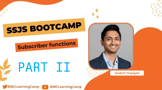 Welcome to the SSJS Bootcamp hosted by Jyothsna Bitra as part of the Phoenix Salesforce Marketer Group. This is week seven which covers the subscriber functions that give you the ability to view and change the subscriber status of your Marketing Cloud subscribers. These bootcamp…