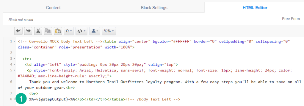 Malik drops this code into the email template and makes some modifications which we’ll go over here: