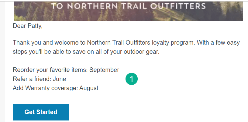 Use Case: Northern Trail Outfitters has kicked off their loyalty program signing up a large list of members. NTO wants to reach out to each loyalty member providing a list of customized steps they can take to maximize their loyalty program.