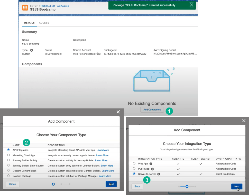 In order for Bruno to send an API call from the cloud page using SSJS he first needs to create an installed package to obtain the key data points that will be used in the Auth and Rest/Post call.
