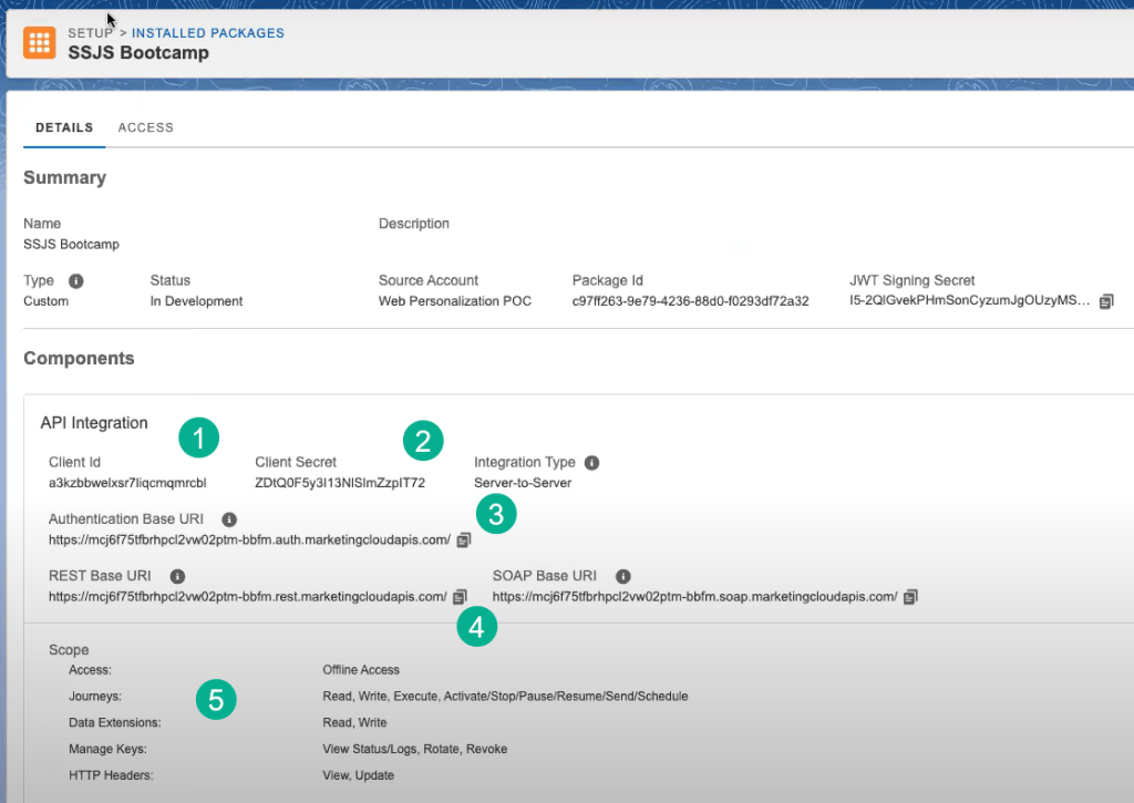 Last select the scope access areas needed for this installed package. As you can see later in the video we were not able to connect to this installed package due to the team not selecting the right access areas. Check out our second SSJS Hands On session for details on this issue.