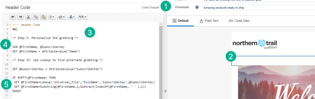 Use Case: The Northern Trail Outfitters creative team has built their welcome email with some cool ampscript but are having challenges displaying the greeting consistently. The desired output is to display the first name of the loyalty member. One data source displays it correctly while the other data source displays first and last name.