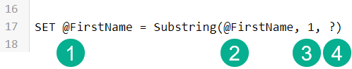 (2) The first variable of the Substring function will be the @FirstName variable.