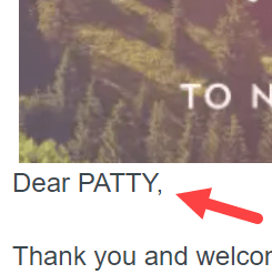 In our example we have a data point that is displaying Patty Carlson for the greeting.