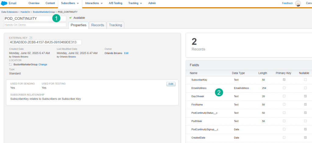 (1) Create a new Data Extension or copy from an existing data extension if fields will be consistent.