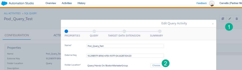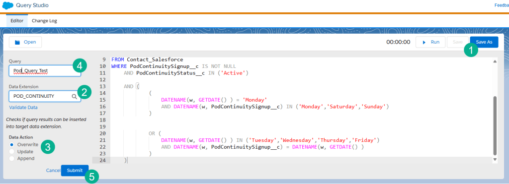 Whether that’s in Email Studio or Contact Builder, build a data extension that will pull in data from your Select statement of your query.