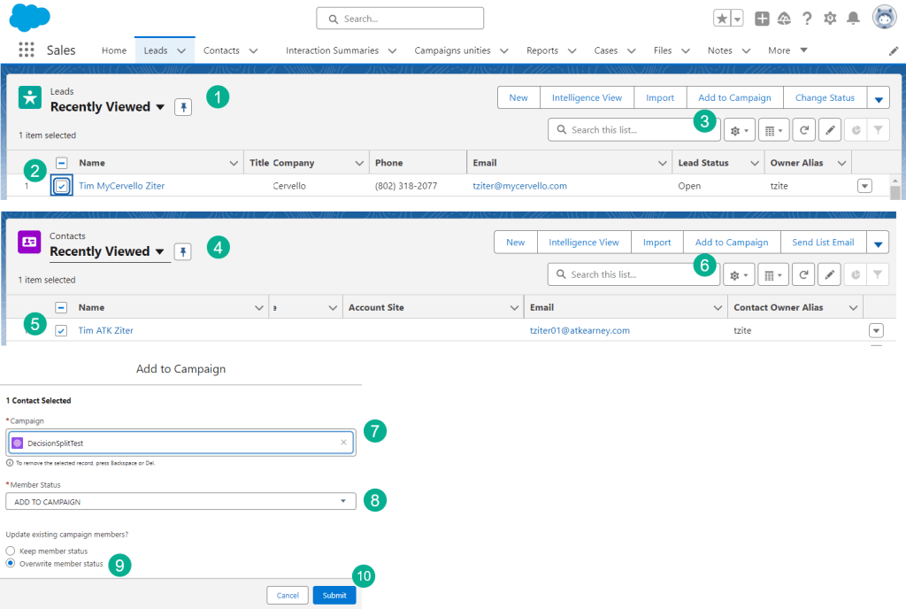Testing Step #3: Add the Lead and Contact to the campaign
