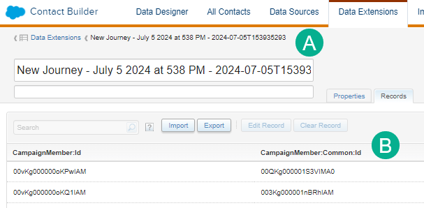 (A) Navigate to the data extension for your Journey.