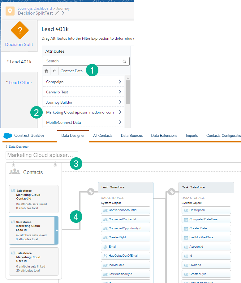 (4) You can see the association of a lead ID and the different data extensions the ID can link towards. In this use case we’ll be looking to pull in real time data from the Lead_Salesforce data extension.