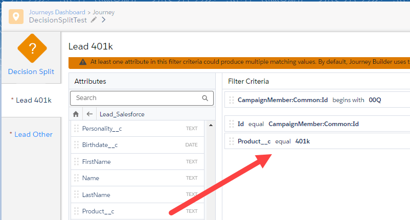 Decision Split Tip #1: Hover to see the Journey Path to get a view of the path for the field simply over over the field in the configuration. The path to the field in the decision split can be very complex including multiple objects especially on the Contact Data side. Hovering is a quick way to validate you’ve selected the right path.