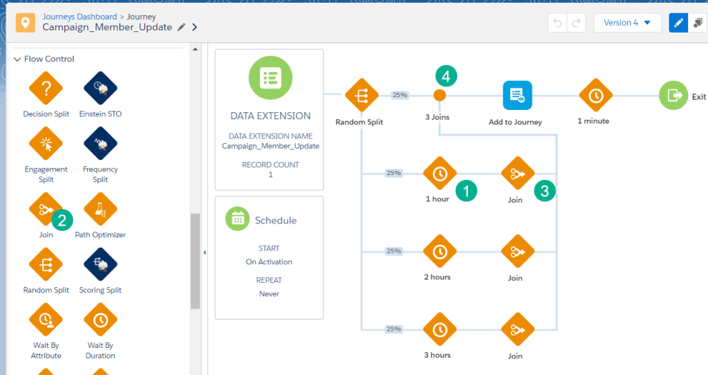 In our walkthrough of how to update fields in Salesforce: https://handsonsfmc.com/how-to-update-salesforce-object-fields-in-bulk-with-journey-builder/ we mentioned adding functionality to spread out the API calls made when updating fields in bulk in Salesforce. In this use case we’ll update the journey to spread out the field updates over hours to prevent hitting API limits.