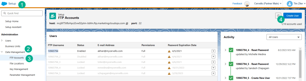 2.) Setup an FTP Account in Marketing Cloud
