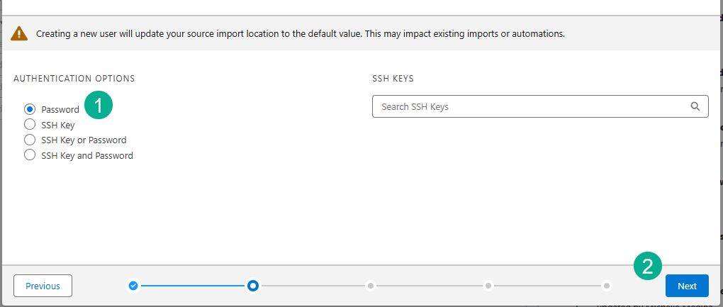 (1) If you don’t have a site setup already, select New site.