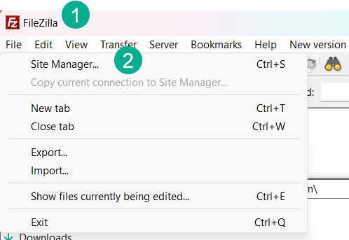 (1) In the FileZilla program