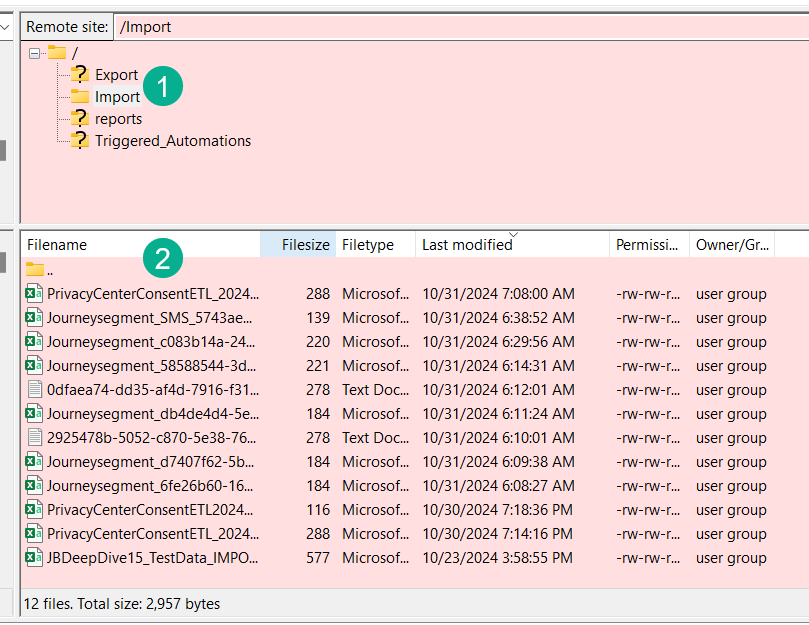 Gaining access to the FTP is essential for any user of Marketing Cloud. Having visibility to the files in your Import/Export folders can be helpful to validate automated processes. For example in the automated updating of the All Subscribers database covered on this blog: https://handsonsfmc.com/how-to-set-up-an-automated-unsubscribe-process-in-marketing-cloud-part-i/ it can be helpful to see that file be populated in the Import folder before the Import Activity pulls in the file.
