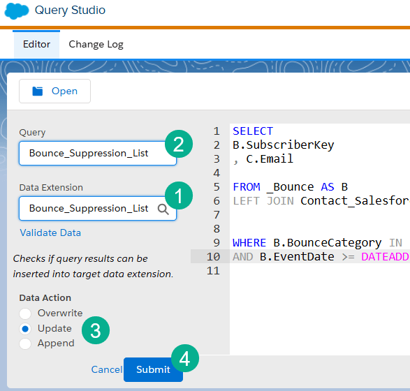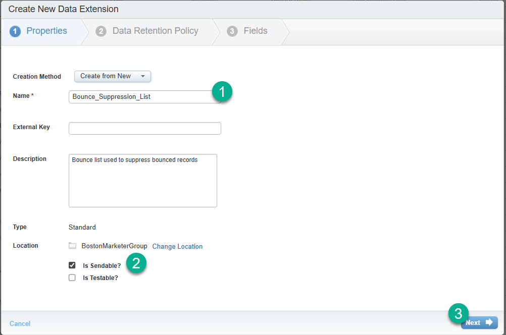 3.) How to create a Bounce suppression list data extension